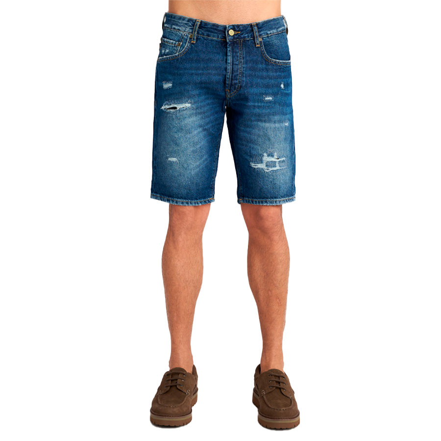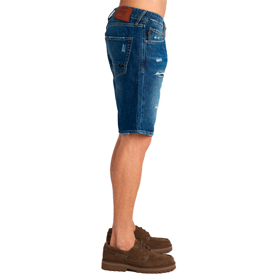 Ανδρική Τζιν Βερμούδα STAFF Χρώμα Μπλε με Σκισίματα Paolo Man Short Pant 5-890.119.S2.053 -Dark blue